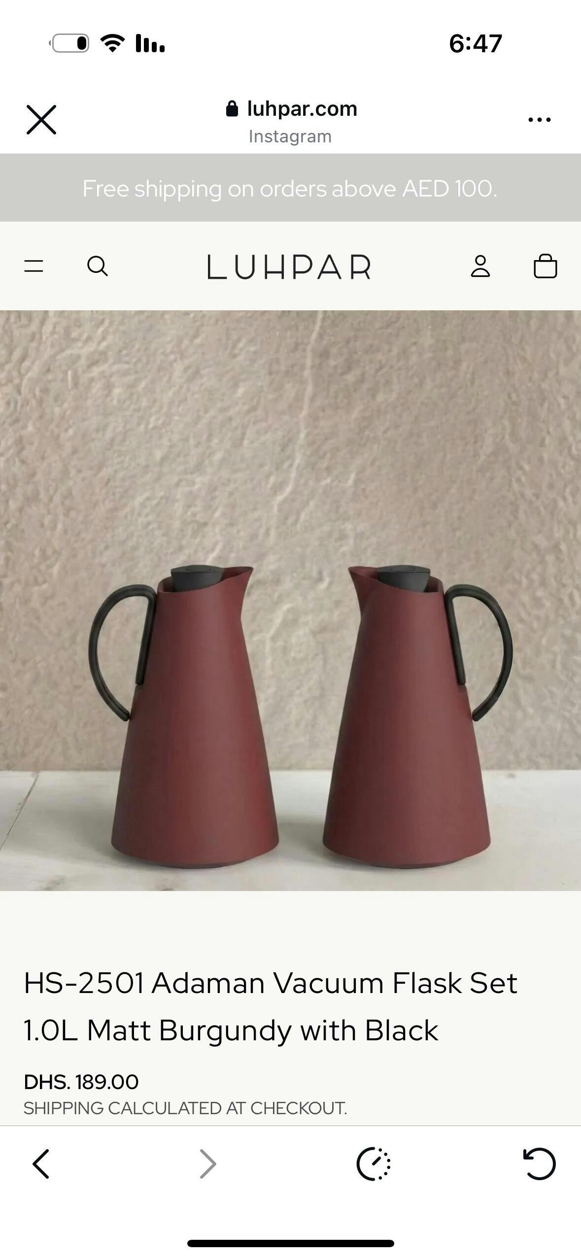 Fully tested and ECAS certified in the UAE, the Adaman Flask Set reflects Luhpar’s commitment to safety, quality, and long-lasting use. The ergonomic black handle and precision pour spout provide comfort, balance, and smooth, drip-free serving, making the set ideal for daily use, hosting, or gifting.